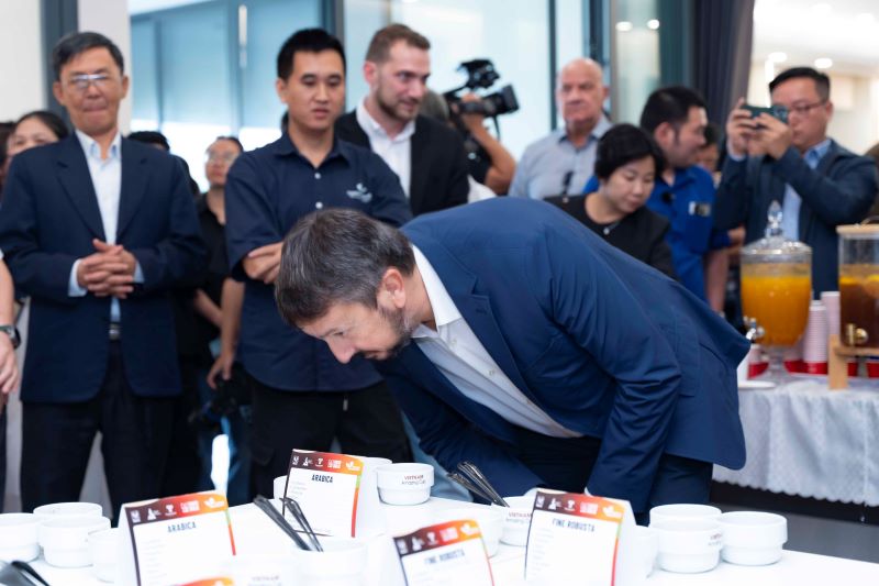 Ông Yannis – CEO Hiệp hội Cà phê Đặc sản Thế giới (SCA) Cupping các mẫu đặt Top 5 Robúita và Arabica cuộc thi Vietnam Amazing Cup 2025